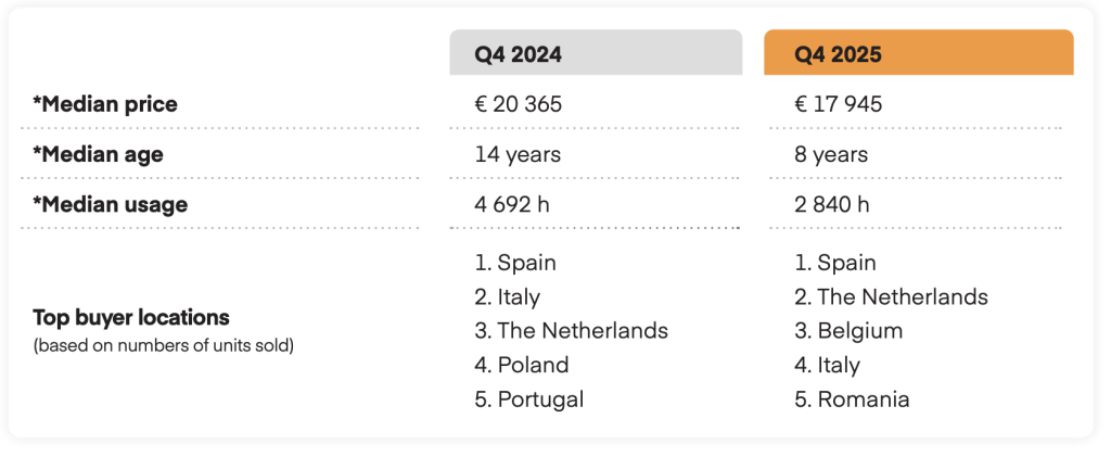 Kuras valstis 2025. gada Q4 visaktīvāk pirka lietotos traktorus?
